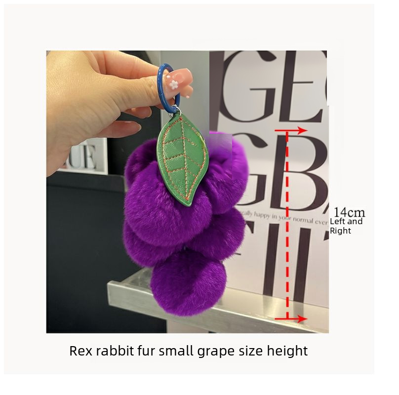 Rabbit Fur Pendant Plush Charm Keychain Grape Purple Fancy Plush Grape Keychain Backpack Handbag